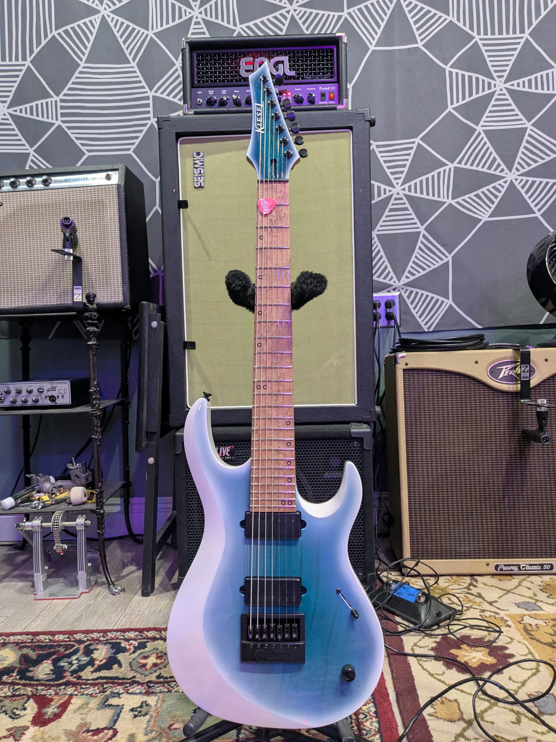 Kiesel Aries 7 string Kiesel Aries 7 string Sunburst PRS Sunburst PRS Suhr Super Strat Suhr Super Strat D’Angelico Hollow Body D’Angelico Hollow Body Gibson Heritage SG Gibson Heritage SG John’s Super Strat John’s Super Strat Orange Suhr Strat Orange Suhr Strat Green Fender Highway One Strat Green Fender Highway One Strat G&L Tele G&L Tele Martin D-15M Acoustic Guitar Martin D-15M Acoustic Guitar Yamaha Classical Guitar Yamaha Classical Guitar Blueridge Dreadnought Blueridge Dreadnought Larrivee 12 String Acoustic Guitar Larrivee 12 String Acoustic Guitar G&L L2500 5 string bass G&L L2500 5 string bass Reverend Mike Watt bass Reverend Mike Watt bass Mexican Fender Precision Bass Mexican Fender Precision Bass Aguilar GS112 Bass Cab Aguilar GS112 Bass Cab Aguilar Tone Hammer Bass Amp w/ Ampeg 410 Cab Aguilar Tone Hammer Bass Amp w/ Ampeg 410 Cab GK Backline 110 Bass Amp GK Backline 110 Bass Amp Fender Princeton Non-Reverb Fender Princeton Non-Reverb Engl Fireball 25 w/ 2×12 Engl Fireball 25 w/ 2×12 Gibson Skylark w/trem Gibson Skylark w/trem Tungsten Cortez = Tweed Deluxe Tungsten Cortez = Tweed Deluxe Vox Pathfinder 15R Vox Pathfinder 15R Peavey Classic 50 410 Peavey Classic 50 410 Marshall Lead 12 Marshall Lead 12 Fender Pro Junior Fender Pro Junior Fender Blues Junior Fender Blues Junior Crate GTD15R Crate GTD15R Pignose 7-100 Pignose 7-100